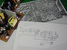 先般、NetVistaの修復をした時、電源部を自分で修理が出来ないかと、少し基板の回路を追っかけてみました。(左写真)