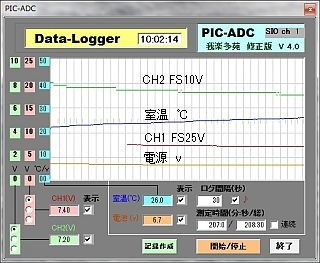(実は、当たり前のことなのだが、「電圧ロガー」の出力がPCのシリアルポートに接続されていないと、プログラムの方は動作しないようにしてあるので、プログラム単独でのデバッグは出来ない)