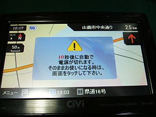 このナビでは、この「警告」が幾度も出ては消えるが、その度に「補助電源」から追加供給されるらしい。