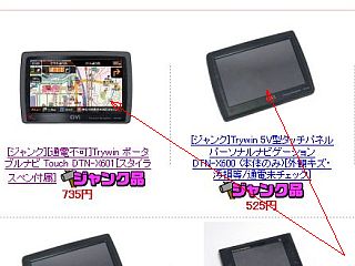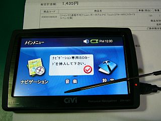 そこで、追加で「(地図入り)ナビSDカード」を入手しようと、広告の記事をしっかり読み込み、更にメールで問い合わせをした上で、これにはそれが入っているはずだと期待と狙いを付けて、この「ポータブル・ナビのジャンク[Touch DTN-X601]」を発注した。(左写真<クリック> 総費用\1,435送料込み)