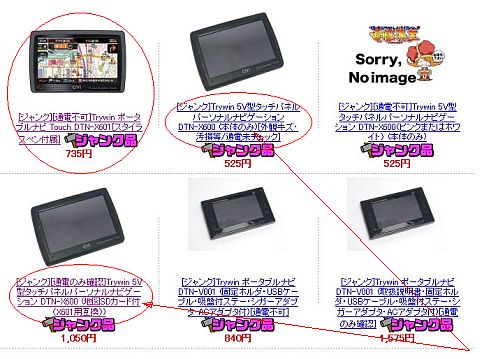 (勿論、「真っ黒画面」+「地図SDカード付き」のジャンク品(1,050円)もあるのは分かっていたが、三百円も高いので、これは“対象外”だったし)