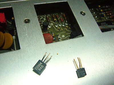 IC(CA3046)も簡単に外せるが、生憎、手持ちが無いので、先ほどネットで注文を出した。手に入ってから入れ替えてみよう!どうなるか、愉しみ♪(図5の手前下)