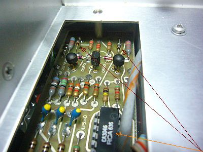 奥の方に、「江崎/トンネル・ダイオード」が見えるが、これらが不良化していたら厄介だ。(図5の矢印)