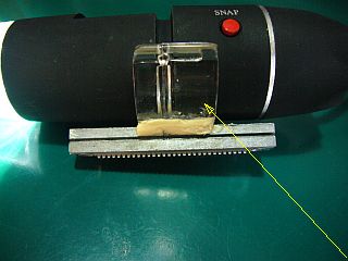 「顕微鏡ホルダー」と「稼動部」との結合は、接着剤付けになったが、一応は保持出来ているので、これなら使えそうだ。(図1)