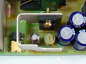 現状だと調節用VRを回しても6V以上にはならないので、VRの“効き具合”に影響する直列抵抗に、並列に2.4KΩを付加して、VRの効きを良くして、可変範囲を広げました。(左写真<クリック>)