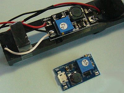 次に、バッテリ「18650」を2本並列接続にして、ヤフオク!で買ったアップ・コンバータ2種を、試してみた。
