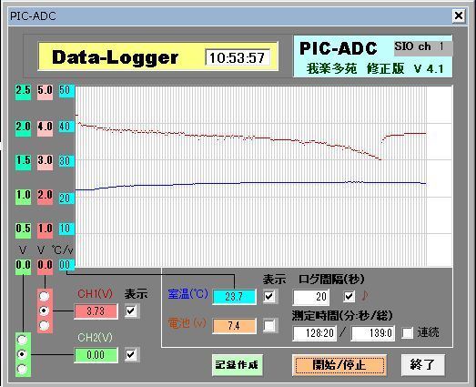 実際に「自作データ・ロガー」で計測してみたら、約2時間は維持出来るようだ。