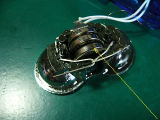 周りは熱で溶けそうな危うい状況だが、一か八かで、半田鏝を突っ込んで、配線替えを決行した。(図4<クリック> 赤矢印)
