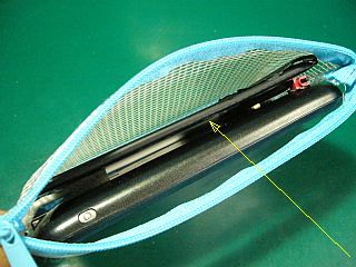 これを、背中に留めてあった約5mm厚のクッション材をスペーサーとして使って、バッテリと本体との間に間隙を作ってみた。