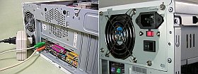 後、BOXをくるりと半回転して、手前から出ていたコードの束が向こう側から出るようにして、外側の電源アダプタも問題無く取り付けられるようになりました。(上写真<クリック>で、改造前後の内部の様子)