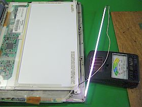 さて、インバータを改造した後、蛍光管をスリーブに入れて元に戻してみようとしたのですが、どうやってもバックライト導光板側面に、上手く戻す/組み付ける事が出来ませんでした。_ク"ヤ"シ"イ"!_