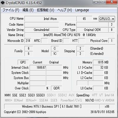 CrystalCPUIDを見ると、CPUが2個あることが分かる。(図6)