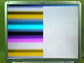Win2000を組み込んで、HDBENCHを走らせて見たのですが、graphics_ATI RADEON IGP 340M(AGP)_はかなり高性能らしく、他機種ではゆっくり流れるカラー・バーが、これでは眼にも留まらぬほど早く流れます。_左写真_