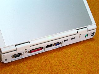 当苑で使用するには、USBポートが一口でも左側_最悪でも右側_に欲しい処ですが、これにはヘンなもの?しかありませぬ。ACアダプタ口とFD口だけ!_左写真<クリック>_