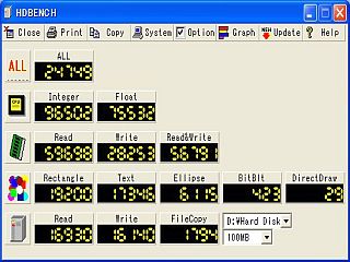 HDDは、中速度だとしたらこんなものか!...グラフィックスは、途中のスクロール状況を見て、もう少し速いだろうと思ったのですが、それ程でもなさそう。