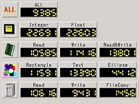 旧い10GB-HDD_DJSA-210_を使った事もあって、パフォーマンスはもうひとつで、HDBENCHのALL値は、10Kを切っています。Celeron 500MHzなら、こんなものでしょうか。_因みに、現メイン機TP600E改-550MHzのALL値は、約15K_
