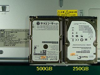 _320GBの方がもう千円程安かったのだが、10GB当り約百円の計算だと、500GBの方が割安だったので。笑_