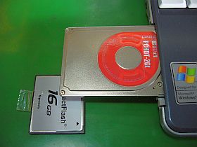 HDDがダメなら、他に起動出来る手段は無いものかと、CFやカード型HDD_PCMCIA_を挿してみましたが、やっぱダメですね。認識しない!?_左写真&<クリック>_