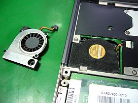 しかし、こちらの方_ファンの入替え_が、手間が掛かった!_パームレストは元より、キーボード、上枠など全部剥がさないとファンを取り替えられない。_左写真<クリック>_