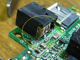 この不動ジャンクには、「電源ジャック部」の“半田付け不良”もありました。_左写真_