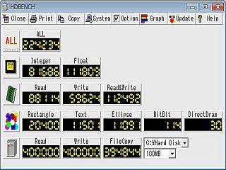 例えば、どの程度の“能力”があるかを見ようと、HDBENCHを走らせて見たけど、無茶苦茶な値!_左図_
