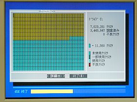 ついには、HDDのクラスタ・スキャンまで実行。_左上写真_ ・・・・・ 延々30時間の結果は、問題無し!で、成果無し!