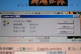 無線LANカードは外しておいて、ケーブルで電話線に繋いで例の接続サービスへアクセスしてみました。