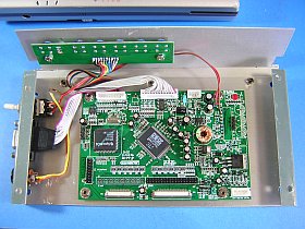 実験で上手く動作したので、コントロール・ボードを手製ケースに入れ、前回のこれに背負わせたら、一応スタンドアロンの立派な?液晶ミニ・モニタが出来上がりました。