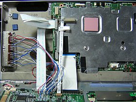 先々回、一応PC側のLVDS出力の取り出し口を見付けたつもりだったのですが、上手く行かなかったのはこの場所が不適だったのかも知れないと考えて、今回はコネクタ・ピンから直接取り出す事にしました。