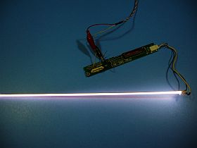 蛍光管/CCFTを別付けして実験した事を思い出して、インバータ単独で、外部の電圧可変DC電源で働かせてみました。