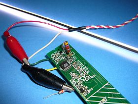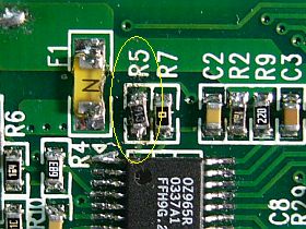 本体に組み込む際、実験時の大きなソリッド抵抗では収納に困るので、別基板からチップ抵抗「913」を外して、R5に並列にくっ付けてみました。_合成値は、30KΩ→約23KΩになるはず_