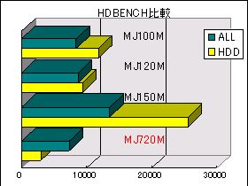 このMJ720Mは、バス・クロックが66MHzと低い上に、拙い事に“普ジ通のHDD”を付けたため、_可哀相に!_最低のベンチ・データになってしまいました。_左上図<クリック>で、相性の悪いHDDの姿_