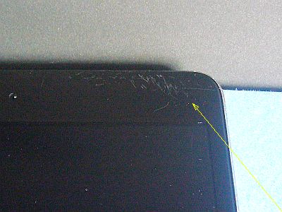 これは、正常に使えるのだが、「前パネル/タッチパネル」の端の方に“ガラス欠け”があって、子供が扱うには危なっかしいものだった。