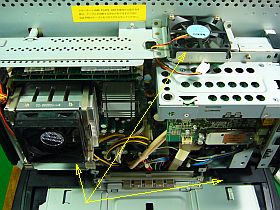 開けて調べてみると、騒音源となるファンは3ヶ所にあります。_左写真_