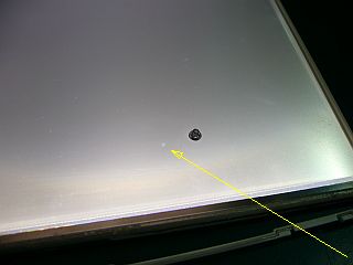 先回、LTN150P4-L03(Samsung製)では、蛍光管の入れ替えが比較的スムーズに行ったのだが、今回のLTD141EN8N(Toshiba Matsushita Display Techenology Co.製)のは、少し眺めただけで、危うそうな感じがした。(図3)