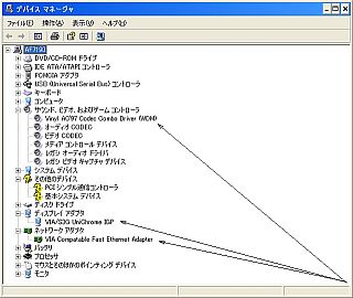 で、それで充当した結果、「絵」、「音」、「LAN」はちゃんとドライバが当たった。_左図&<クリック>_