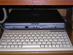 デスク・トップ代用ノートは、左写真のように、蓋を開けないままで使うので、電源スイッチは"”か“”に無いと困る!
