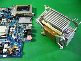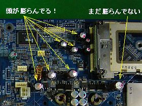 左写真は、リード線類を外すために、「CPU冷却フィン」や「サブ基板」を外してあります。