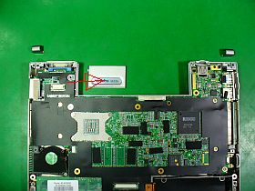 再度組み立ての途中、“画面閉じ検知SW”のリード線を基板側に繋ごうとして、メス・コネクタを見付けられず、うろうろ。