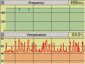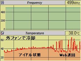 温度変化と冷却用ファンの廻り具合をみると、どうも、温度制御系全体が適切に働いていないようです。