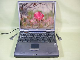 液晶表示_14.1型_は、写真に撮ると左のように結構綺麗に写っていますが、実際には相当草臥れていて、俗に“赤暗い液晶”状態です。それに、バックライトが時折まともに点灯しない事もあるので、ちゃんと手入れをしないとダメなようです。
