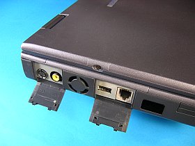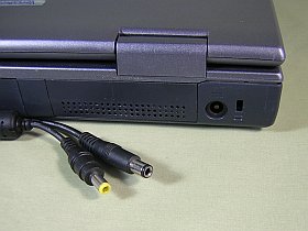 左の写真、黄色口はThinkPad用、黒色口がこれに使っている東芝PC用のもの_