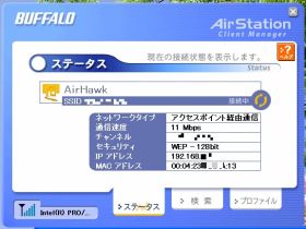 この「無線LANカード_WM3B2100_」も、Buffalo製AirStation用ユティリティで「プロファイル」などが設定出来ます。_左写真_