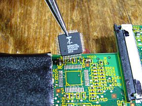 チップを剥がすのは、比較的楽なのですが、問題は半田鏝の入る隙間が充分でない側面があるので、一寸心配!