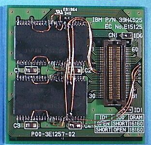 The 2nd article is about 16MB board. To make this board, you should get a 32MB EDO (Extended Data Output type) S.O.DIMM (144pins Small Outline type Dual In-line Memory Module) at first. When buying the module, check the name of the chip to make sure it is xxx65165x or a compatible one.