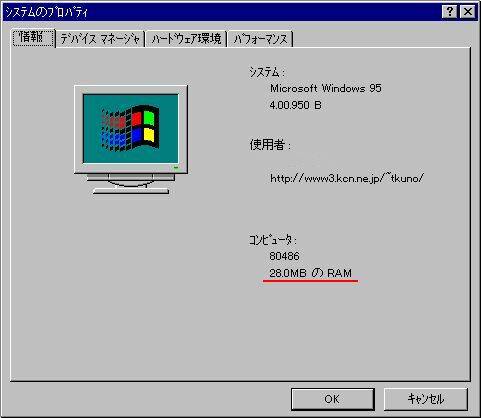 In the PC110, the Win95 will not work with 32MB in 256 colors mode. You have to use it with at most 28MB.