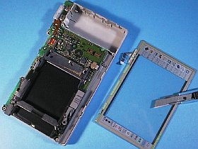 再貼付けも、それ程難しくはありませんでした。ただ、表示部を戻す際、液晶パネル用のフレキに強い癖が付いていたので、コネクタへ嵌め込むのにちょっと梃子摺ったかな。