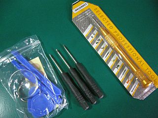 「iPhone4、4s専用星型ドライバ」は、やはり専用品(0.8x25mm)の方が持ち易くて良かったのだが、これだけでは内部の分解作業には用が足りなかった。(図9右上 総費用¥392送料込み)