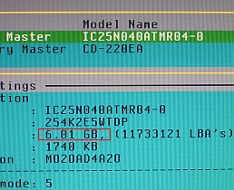 出物の256MBメモリを探すつもりで、店の棚を覗き込んでいたら、「IC25N040」が6GBとして売られているのが眼に留まりました。