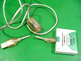CF専用型サンワサプライ ADR-CFU2)は、ごつくて長いケーブル付きだったのですが、これの改造を考えた。(左上写真)
